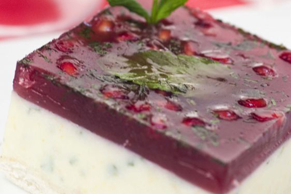 Tarta fria de yogur y granada mollar de elche